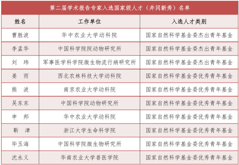 中國畜牧獸醫(yī)學會副理事長、秘書長楊漢春教授宣讀了第二屆井岡新秀名單