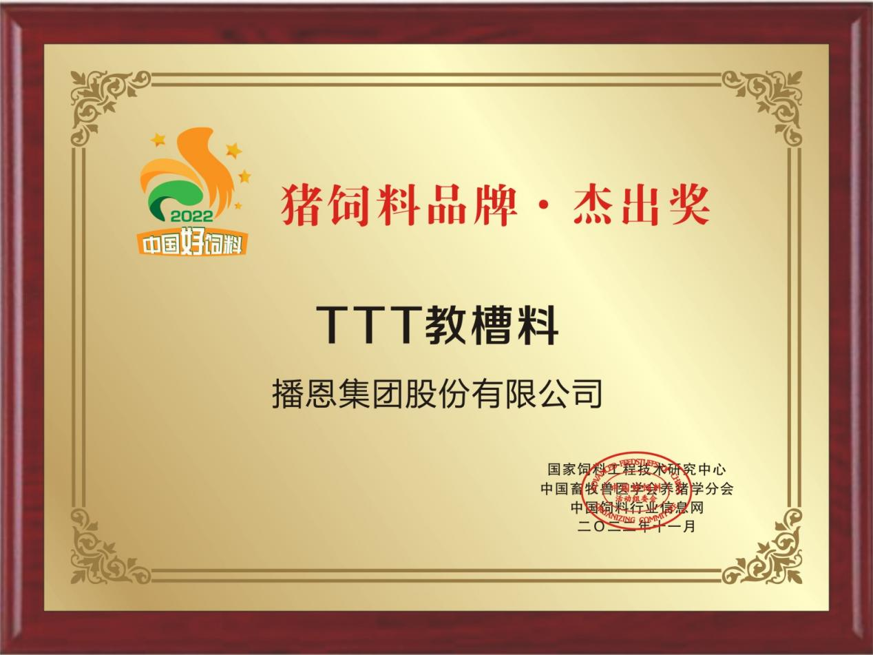 2022年12月3日,由中國飼料行業(yè)信息網(wǎng)主辦的“中國好飼料2022·頒獎盛典”順利舉辦。播恩集團(tuán)“TTT教槽料”憑借自身的核心技術(shù),以及在教槽料市場上的優(yōu)異表現(xiàn),從眾多優(yōu)秀產(chǎn)品中脫穎而出,一舉獲評“豬飼料品牌·杰出獎”!