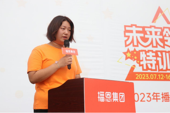 家長代表任飛女士對集團本次舉辦的夏令營表示了最真誠的謝意,感謝公司為孩子們搭建的學習與交流的平臺。播二代夏令營給孩子們創(chuàng)造了一個專業(yè)學習、開闊視野和能力培養(yǎng)的機會,發(fā)現了孩子們無限的潛力和創(chuàng)造力,也點燃了孩子們學習與交友的熱情。她祝愿播二代夏令營越辦越好,也祝愿播恩發(fā)展長虹。