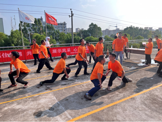 下午3點左右,全體人員移步到今天活動的主戰(zhàn)場-食堂外大坪臺舉行本次團建的拓展游戲,根據之前的分組,一共分1、2、3、4、5、6組,每組10人。同4個游戲項目,積分制分勝負。