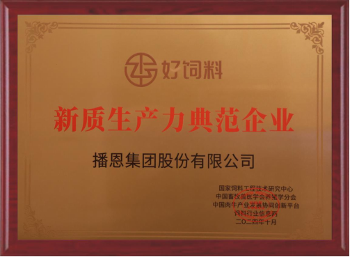 此次獲評“新質(zhì)生產(chǎn)力典范企業(yè)”稱號,不僅是對播恩過去努力的肯定,更是對其未來發(fā)展的鼓舞。播恩集團將繼續(xù)秉持“為客戶創(chuàng)造價值”的理念,通過持續(xù)創(chuàng)新和深耕細作,推動新質(zhì)生產(chǎn)力的發(fā)展,為中國飼料行業(yè)的高質(zhì)量發(fā)展做出更大貢獻。